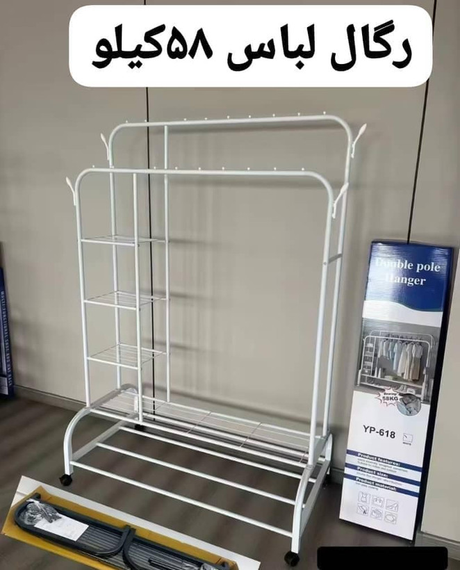 قیمت رگال دوبل چرخ دار ضد زنگ دارای قفسه و تحمل وزن 58کیلو وارداتی
