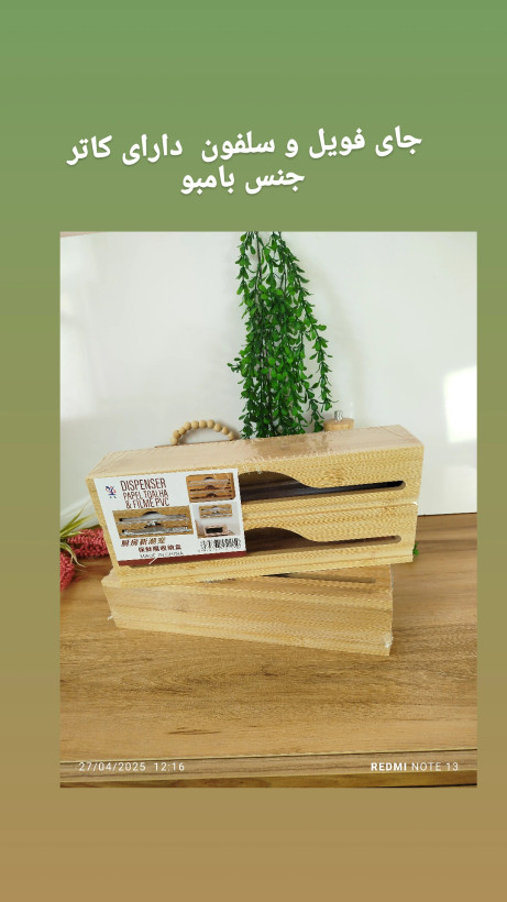 سلفون کش ،جای سلفون و فویل و سفره ،دارای کاتر جنس بامبو